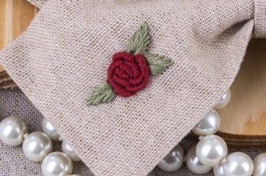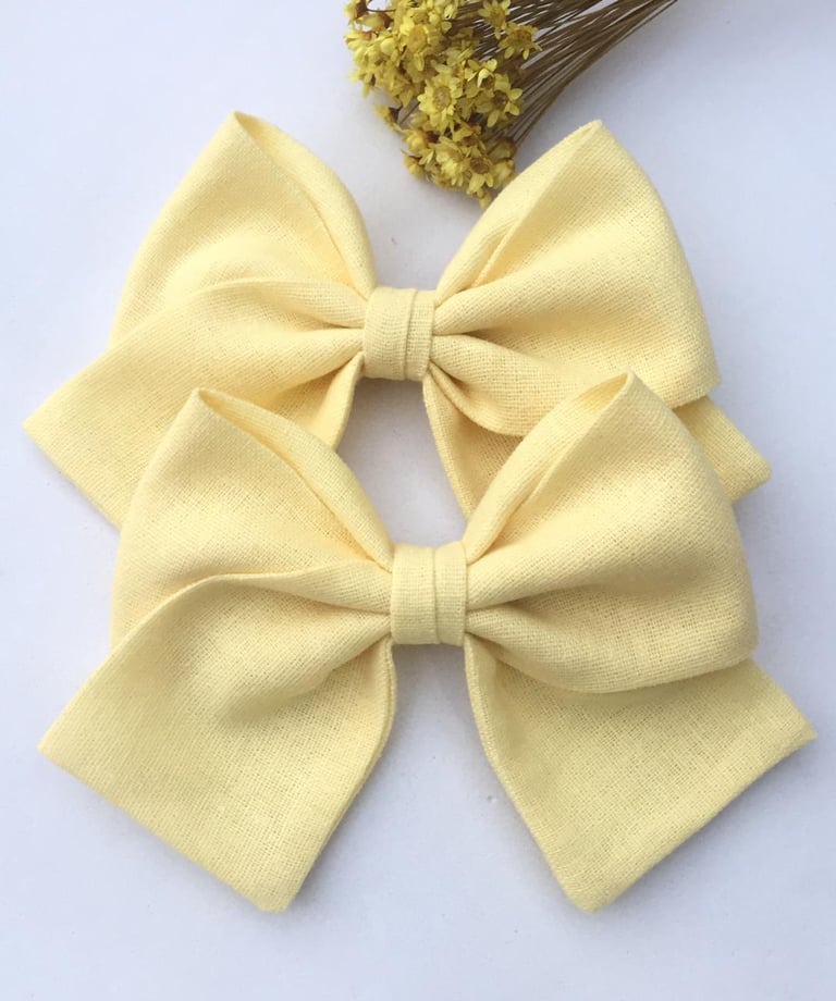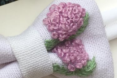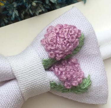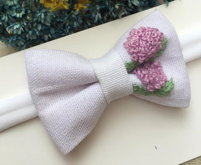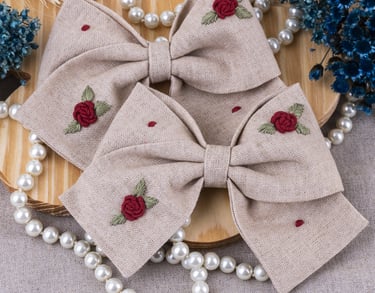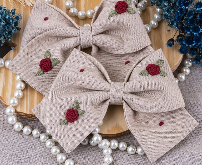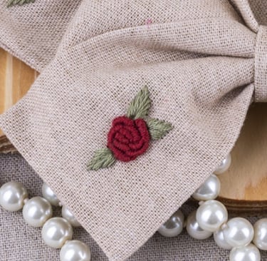 Nossos laços são confeccionados em linho selecionado. Depois que o plano de corte é feito o tecido passa por um tratamento especial para manter o laço estruturado por mais tempo